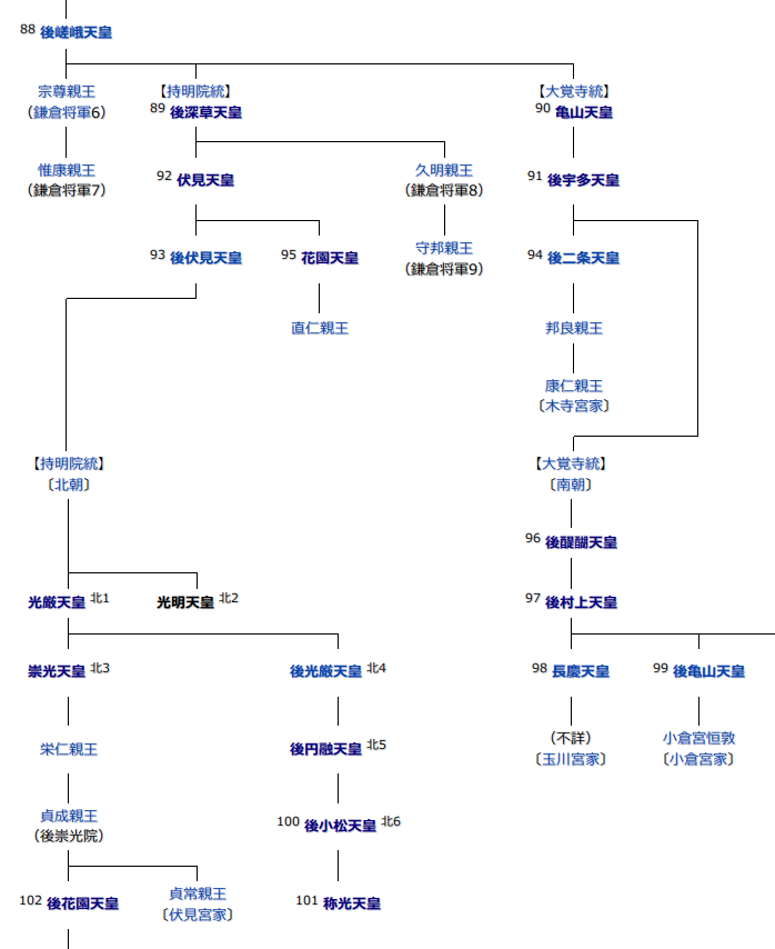 北朝方の持明院統の光明天皇が即位して、再び南北朝に分裂。